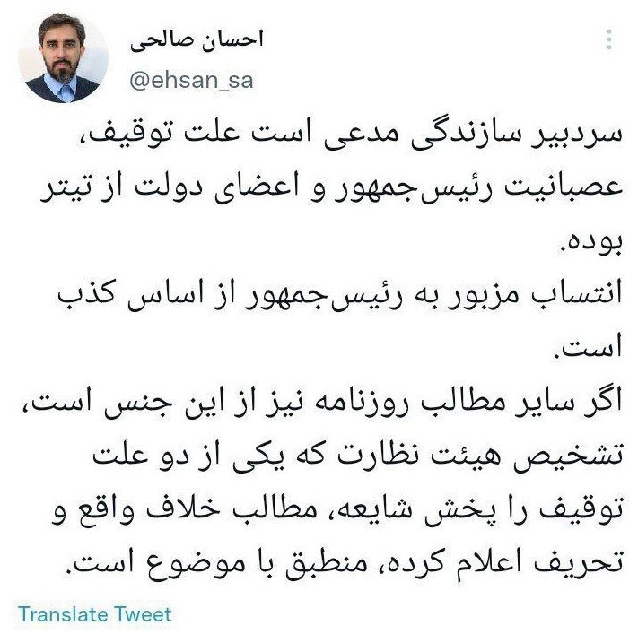 احسان صالحی، دبیر شورای اطلاع رسانی دولت نوشت: