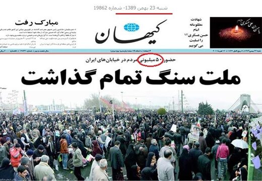 بعد همین امسال، همان کیهانی که ۱۲ سال قبل تعداد شرکت کنندگان را ۵۰ میلیون نفر اعلام کرده بود، نوشته که دیروز رکورد شرکت کنندگان شکسته شد و پرشمارترین راهپیمایی ۲۲ بهمن رقم خورد!