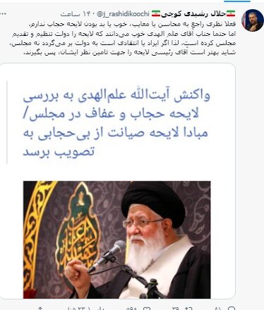 جلال رشیدی کوچی، نماینده مجلس نوشت: